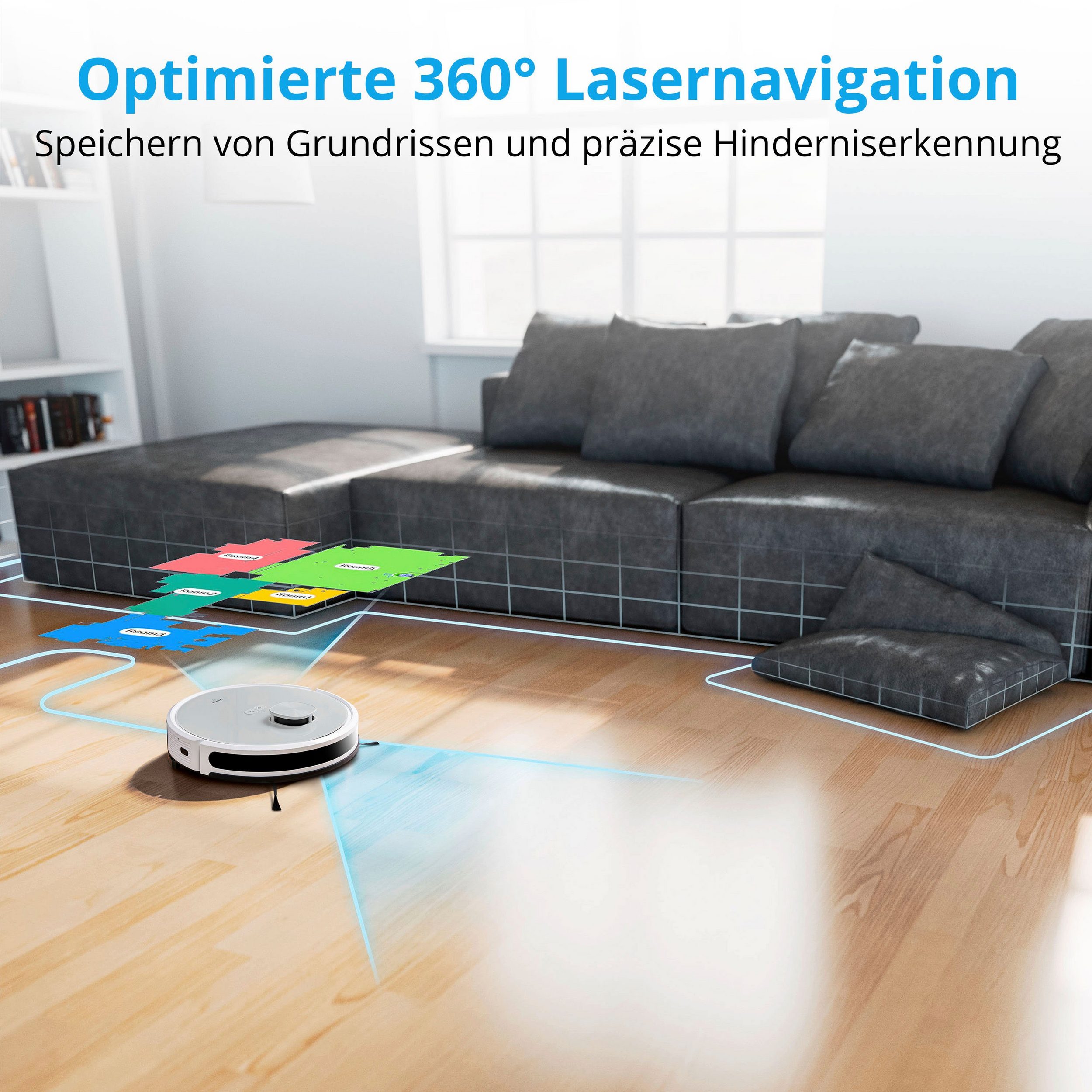 • Aktive Wischfunktion, Präzise Laser-Kartierung und Navigation Tierhaar und Allergiker optimiert (H13 Filter), Moderne Sensorentechnologie